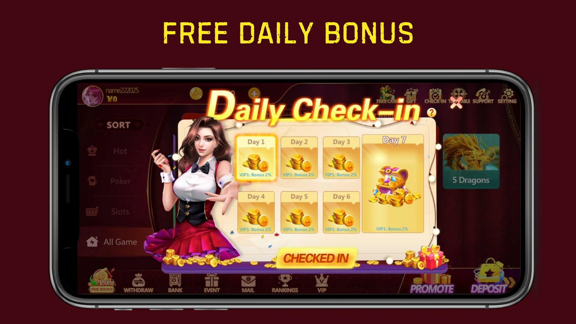 - Daily Check-in Bonus: Log in every day for free rewards.